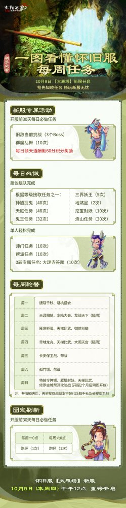 大话西游2免费版:【怀旧服】一图看懂每周新服任务 建议收藏