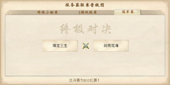 甲级别中, 缘定三生服务器、剑雨花海服务器 携手出线,获得争夺总冠军的资格: