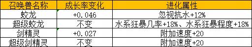 获得进化属性的超级蛟龙、超级剑精灵后续若切换飞升方案变换造型,进化属性不会继承,获得进化属性的材料也会退回。