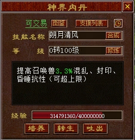 神界内丹(不占用原来的内丹格子,服用的神界内丹也可吐出)