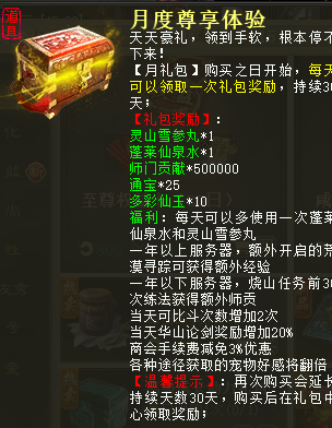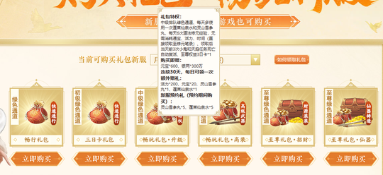 2. 预约礼包 开服前 可 通过 礼包页>> 登录 游戏账号, 畅享绿色通道,进入游戏免排队。平民玩家可以购买冲级特权礼包,礼包送的银两和元宝价值差不多有60元了,还送三日卡,每天领取的经验加倍药水可以让我们在新区快速升级。当然其他礼包也是可以叠加购买的。