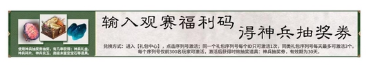 总决赛期间,抖音官方号“ 叶子猪 ”将全程直播,前往收看直播可领取 序列号奖励 ,进入游戏激活序列号,即有机会获得 神兵抽奖券!