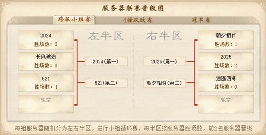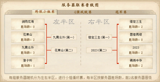 各半区出线的2台服务器,将在今日采用左1VS右2,右1VS左2的方式进行双败淘汰赛,之后胜VS胜,败VS败,2胜直接晋级决赛,2败则被淘汰!