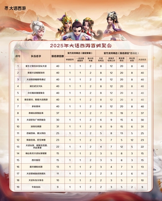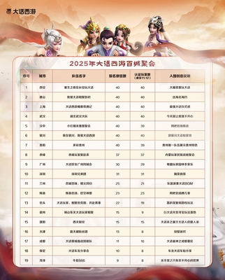 2025年百城聚会第一期总计收到超百支队伍报名,其中创意聚会队伍超50支!我们鼓励各位玩家提出更多有意思的聚会创意,故经综合考虑和评估后,首期入选19支创意聚会队伍,总计覆盖了521名大话兄弟,对此公布如下: