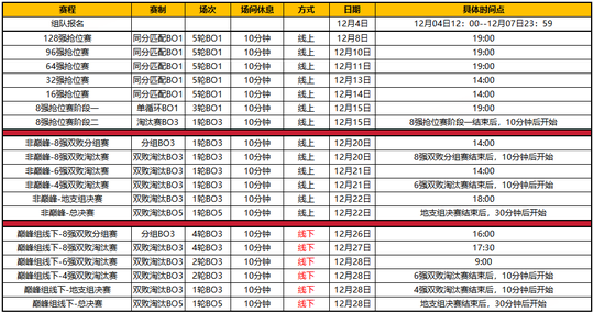 128强抢位赛赛制 争夺排名获保送资格128强抢位赛共计五轮比拼,每场比赛上限为30回合,其中将采用同分匹配机制,每轮比赛中所有同分的参赛队伍,将在战队池中随机匹配对手,队伍取得3胜则晋级下一轮,3败则将淘汰。 最终排名1~32的队伍,将直接保送64强,无需参与后续的96、64强抢位赛;而排名33~64名的队伍,则将保送96强,无需参加96强抢位赛,希望各战队全力以赴,争取更高排名! 比武之巅荣耀赛赛程时间一览: