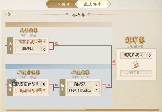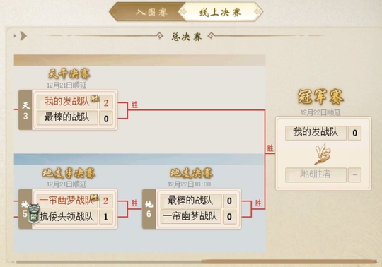 大师组中,“ 我的发 ”战队自天干组中晋级,率先夺得争冠资格;“ 最棒的 ”战队以及“ 一帘幽梦 ”战队则晋级地支组决赛;
