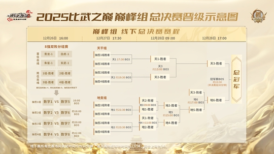 1)比武之巅,问鼎三界!巅峰组八强 线下总决赛将于12月26日~12月28日 聚首上海长三角国际电竞文化中心,在顶尖规格的电竞赛场内,携手冲刺年度总冠军。详情可查看【赛事专题】