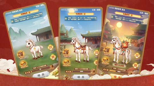 活动期间,每位少侠可领取一匹专属小马(初始成长值50)。回归老友福利翻倍,初始成长值直接提升至100!通过 每日签到 、 游戏活跃 、 分享助力 等任务,即可获得海量饲料,喂养小马,助力其茁壮成长!
