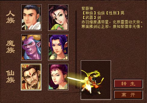 下周更有《三转重生》资料片更多内容即将揭晓,敬请期待! 三转重生,破境登峰《三转重生》资料片为少侠带来了全方位的实力飞跃: · 人物三转 人物达到 2转138级 并完成 14称剧情 及 6 坐骑剧情 后,即可在孟婆处接取转生任务。转生后将变为3转66级,获得30点属性点,并可选择 纯阳子、红拂女、混天魔、九尾狐、紫薇神、霓裳仙 六大怀旧三转造型。根据转生前的种族和性别,还将获得属性修正加成。