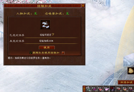 修罗任务当天,均可通过领取双倍获得已累计的经验加成;